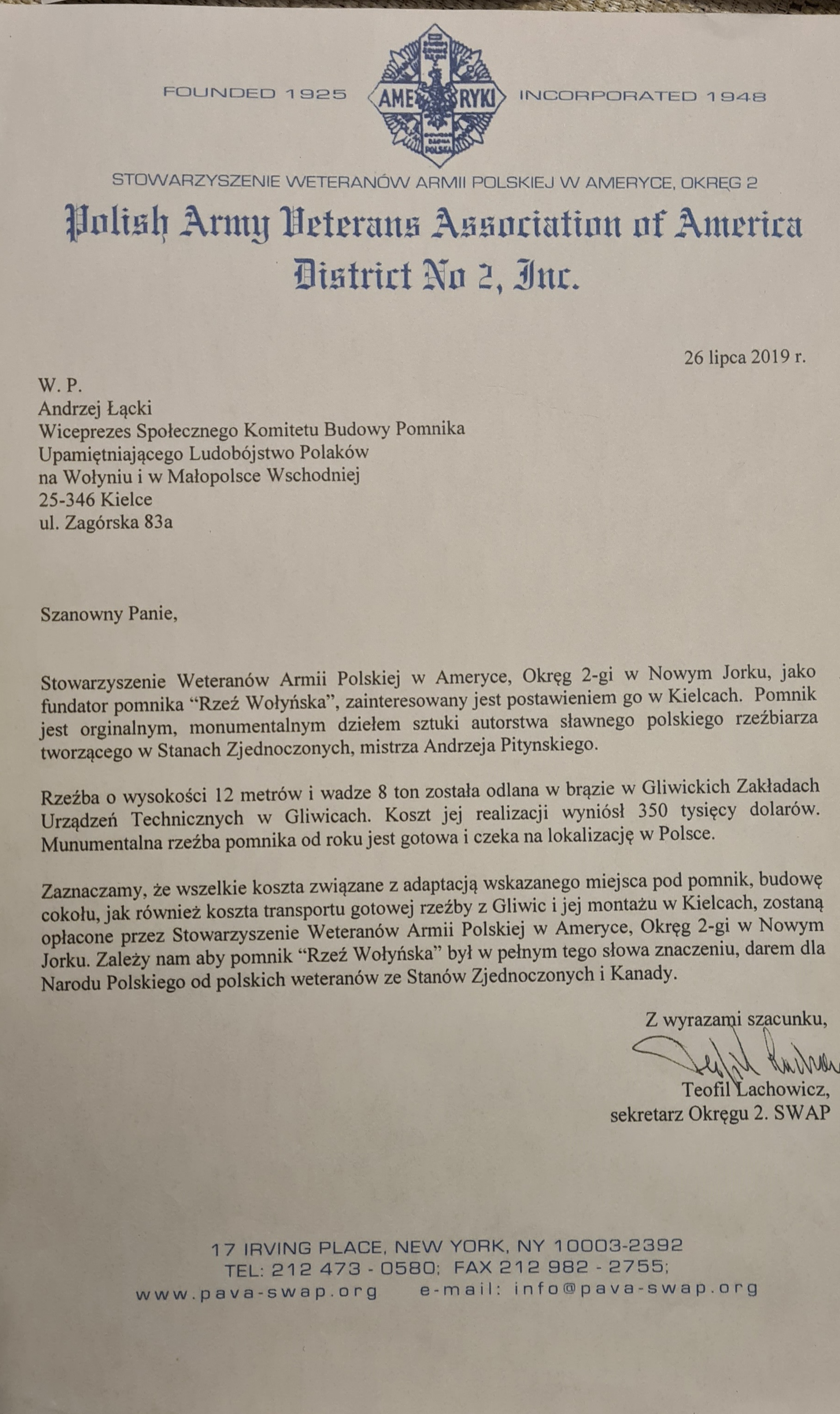 Autor: Andrzej 艁膮cki, Prezes Komitetu Budowy Pomnika